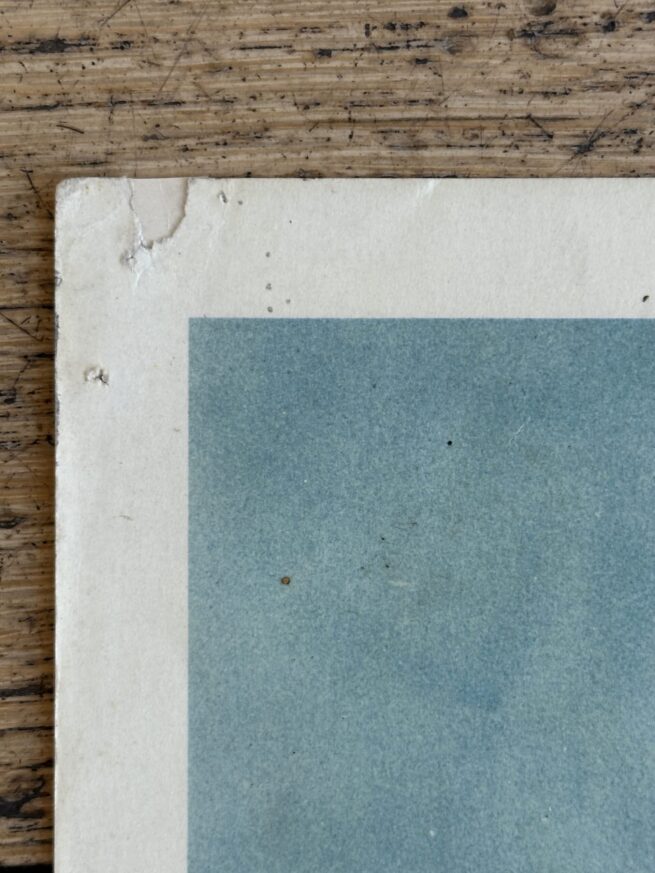Good original condition, with minor signs of age or use, mainly to the borders. Corner and border pin holes, border smudges/stains especially to the right hand border, the very top left corner has been repaired with vintage card (please see close up image)